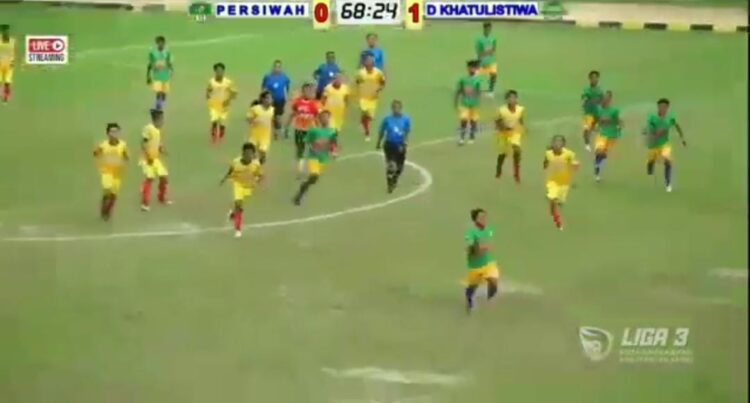Tampak salah satu pemain Delta Khatulistiwa kemudian berlari kencang untuk menjauhi kerumunan pemain Persiwah Mempawah