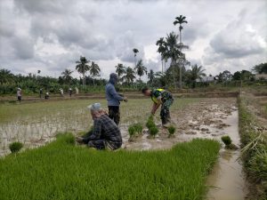 Tingkatkan Ketahanan Pangan, Babinsa Koramil 02/Karang Baru Bantu Petani Tanam PadiAceh Tamiang nusnet.news,