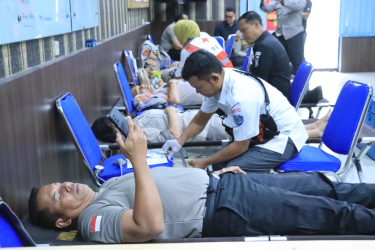 Pelaksanaan donor darah dilakukan oleh personel Sidokkes Polres Labuhanbatu bekerja sama dengan Palang Merah Indonesia (PMI) Cabang Labuhanbatu.