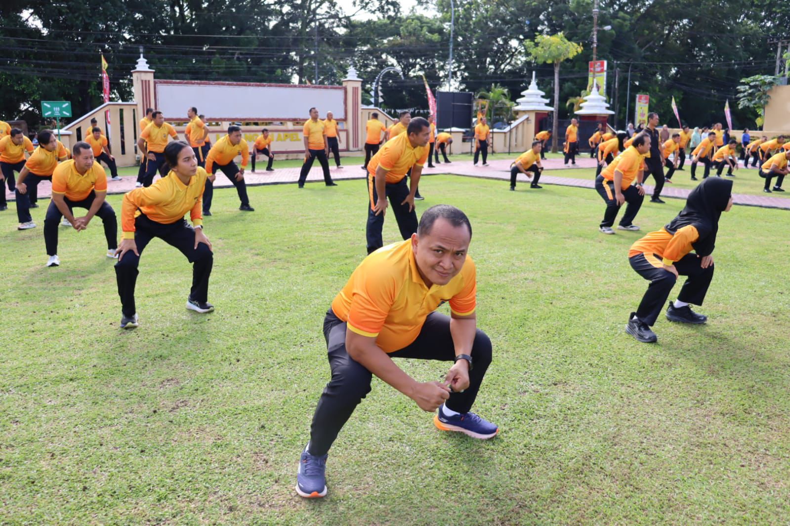 Kegiatan yang diikuti oleh seluruh personel dari berbagai satuan fungsi ini diawali dengan apel pagi, kemudian dilanjutkan dengan senam bersama.