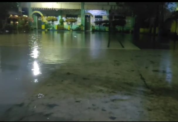 Pantauan yang dilakukan media ini tadi malam, dalam suasana hujan terlihat sekolah dasar negeri 1 di genangi air setinggi lebih kurang 25 cm membuat petugas jaga sekolah tersebut kewalahan menjaga fasilitas sekolah tersebut agar tidak terkena air banjir.