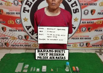 Kali ini, petugas berhasil mengamankan pelaku penyalahgunaan narkotika jenis sabu berinisial RDT alias Daulat(45) warga Dusun Perjuangan, Desa Pondok Batu, Kecamatan Bilah Hulu, Kabupaten Labuhanbatu.