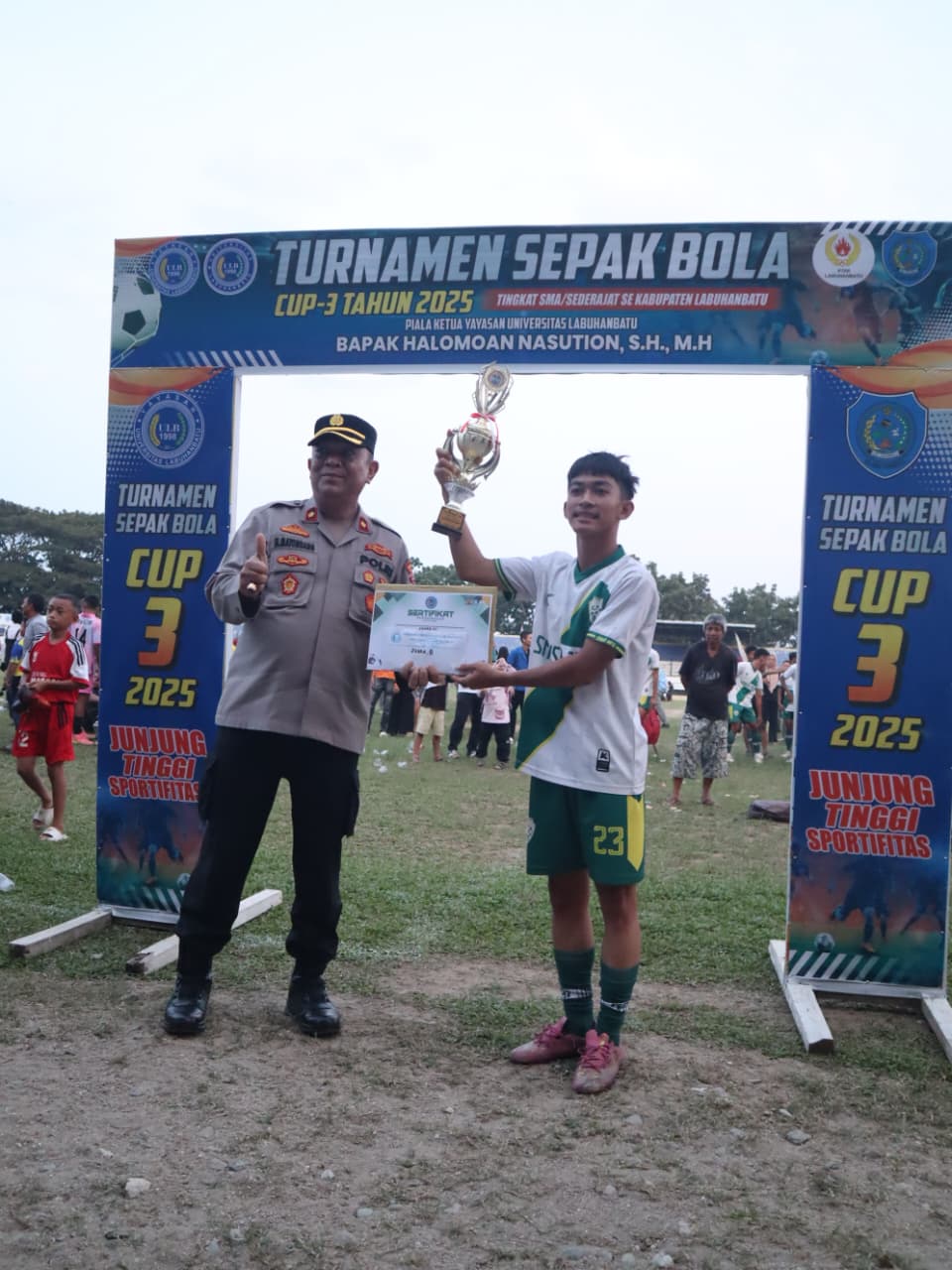 Turnamen tersebut diselenggarakan sebagai wadah pembinaan generasi muda di bidang olahraga, khususnya sepak bola, sekaligus mempererat silaturahmi antar pelajar dan sekolah di wilayah Labuhanbatu Raya. Kehadiran Wakapolres menjadi bentuk dukungan Polri terhadap kegiatan positif yang dapat menumbuhkan semangat sportivitas, disiplin, dan kebersamaan di kalangan pelajar.