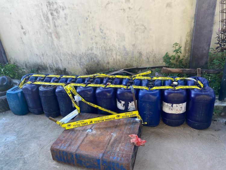 Dari penggerebekan yang di lakukan. Posisi berhasil mengamankan satu unit Mobil dan barang bukti sebanyak 20 jerigen berisi pertalite ukuran 35 liter.