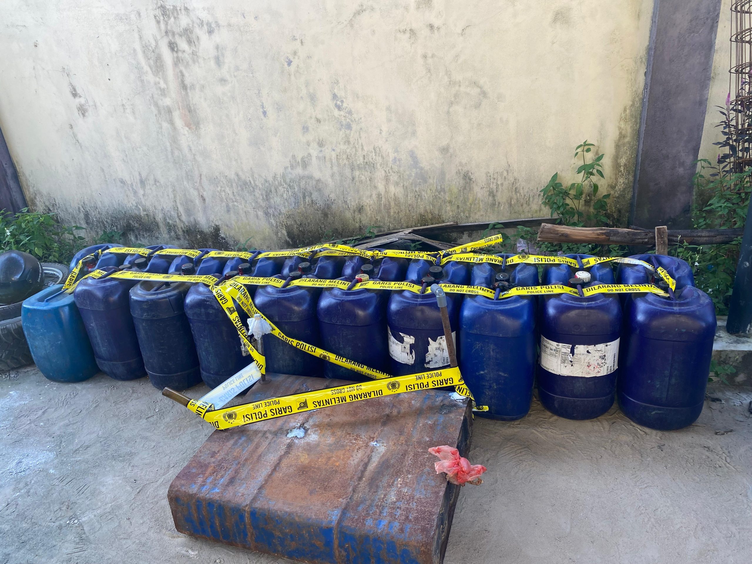 Dari penggerebekan yang di lakukan. Posisi berhasil mengamankan satu unit Mobil dan barang bukti sebanyak 20 jerigen berisi pertalite ukuran 35 liter.
