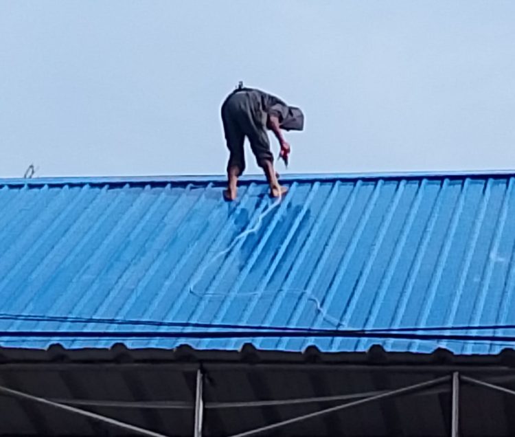 Pantauan media ini, Senin, 17 Nopember 2025, dua orang pekerja pada bangunan TK Juara, saat pasang atap gedung mengunakan alat klem paku seng mengunakan alat yang mengandung aliran listrik, sangat berbahaya, jika kabel listrik itu terkelupas di akibat ujung seng yang tajam bisa menimbulkan sumber listrik, bisa kesetrum.