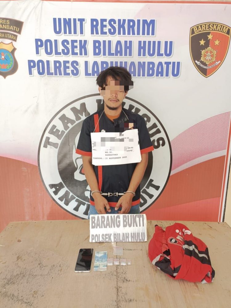 Rantau Prapat, Nusnet.news- Polsek Bilah Hulu Polres Labuhanbatu kembali mencatatkan keberhasilan dalam memberantas peredaran gelap narkotika di wilayah hukumnya. Jumat 21 November 2025, Seorang pemuda berhasil diamankan beserta sejumlah barang bukti sabu di Jalan Lintas Dusun Simpang Rintis, Desa Lingga Tiga, Kecamatan Bilah Hulu. Sabtu (22/11/2025)