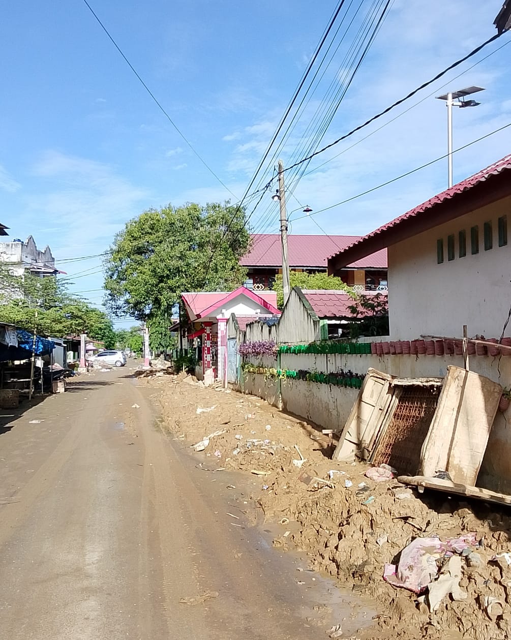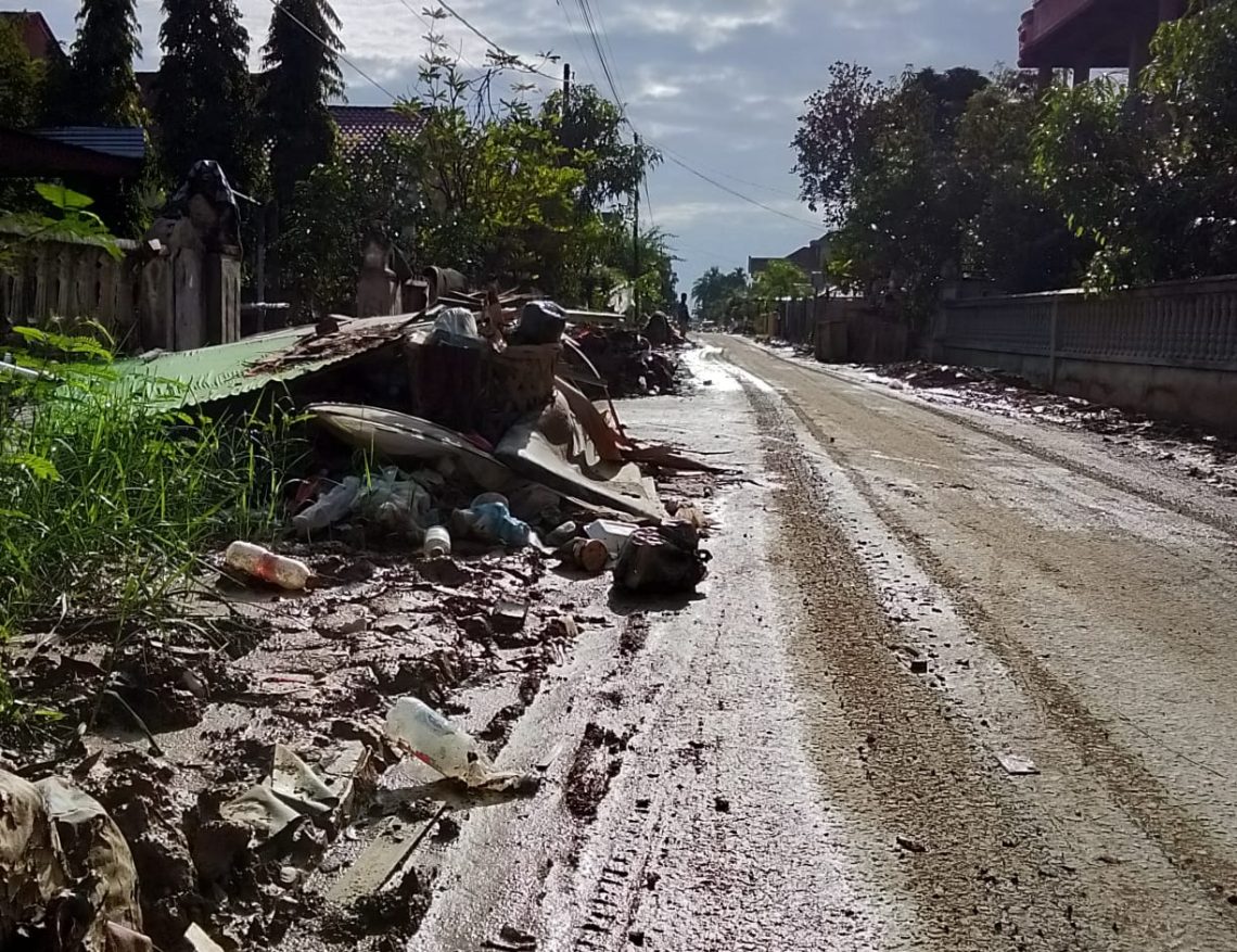 Peran Gampong Daulat Pasca Banjir Dipertanyakan, Sampah Lumpur Masih Menutup Jalan Muhatsyah