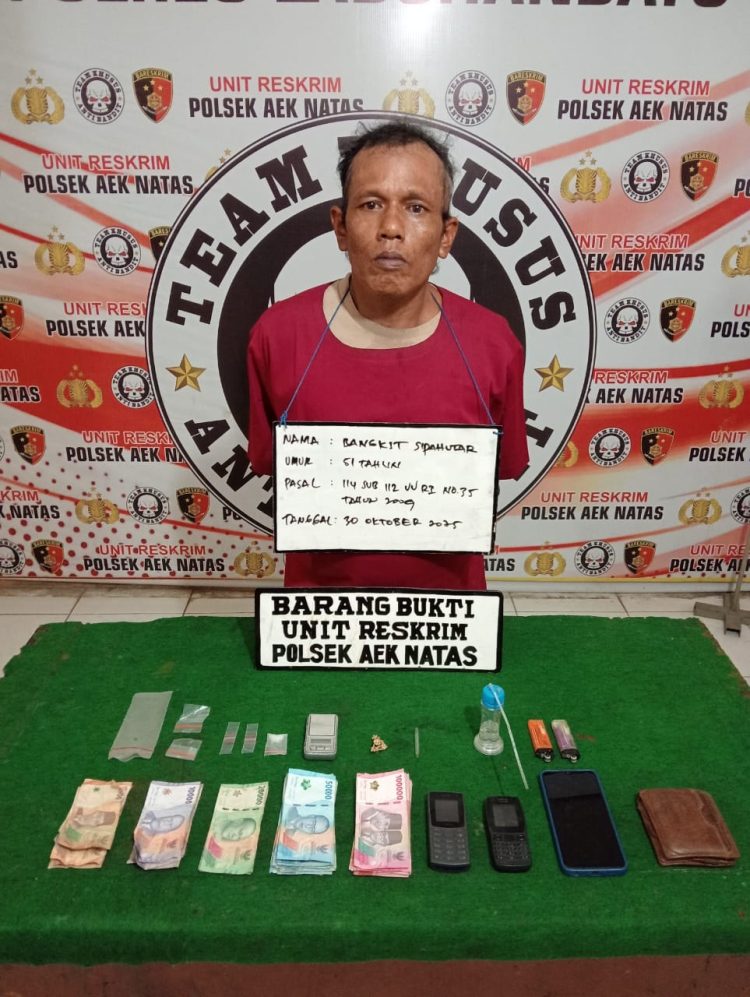 Labura, Nusnet.news- Upaya pemberantasan peredaran narkotika di wilayah hukum Polres Labuhanbatu kembali membuahkan hasil. Satuan Reserse Kriminal Polsek Aek Natas berhasil mengamankan seorang pria berinisial BS (51), warga Dusun II Unte Mungkur, Desa Sibito, Kecamatan Aek Natas, Kabupaten Labuhanbatu Utara, yang diduga sebagai pengedar narkotika jenis sabu.