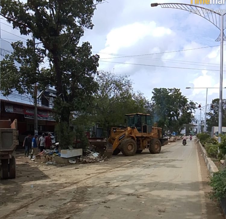 Langsa, Nusnet.news- Tanah lumpur bekas banjir bandang yang terjadi pada Rabu, 26 Nopember 2025 lalu di tumpuk di pinggir jalan oleh pihak pengelola usaha, lumpur dari dalam tempat usahanya di buang di pinggir jalan di depan usaha sudah mengeras, tumpukan Lumpur sudah makan badan jalan sehingga menganggu masyarakat.
